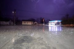 01:25 Video of a lady walking into the gas station with large hail actively falling.